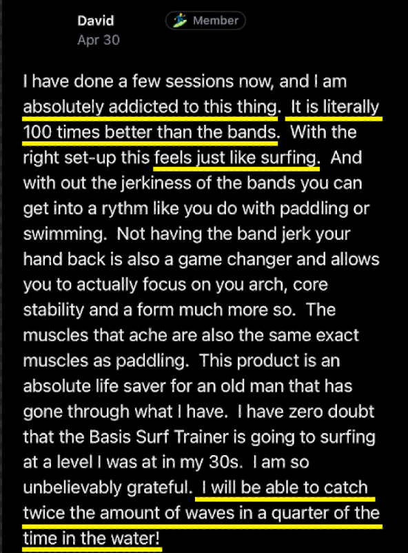 Introducing the Basis Paddle Trainer, the patent-pending trainer that'll get you paddle fit anywhere, anytime so you can catch more waves and have more fun.